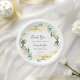 Divirta-se enquanto agradece aos seus convidados por celebrarem com você no seu chá de noiva com este design elegante. Rosa branca baunilha com toques de tons de rosa e amarelo em uma coroa floral sobre um fundo branco. Modelos fornecidos para você.