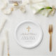 Elegante Taupe Cross First Communion Paper Plates.