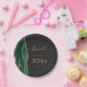 Estas elegantes placas de aniversário de 30 anos modernas apresentam um design de cor d'água verde esmeralda, aparado com brilho dourado falso sobre fundo preto. Personalize facilmente o texto dourado com o nome e aniversário do convidado de honra.