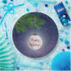 Enfeites de natal brilhante da lua de cheio pendurado num tosse de pinheiro em fundo estrelado do céu. O texto é editável.