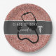 Enfermeira, Formando de Stethoscope, papel brilhante, papel de prata, enlouquece sua festa de formatura com alguns acessórios legal e modernos de mesa! As placas são desenhadas com fundo brilho brilhante cor-de-rosa-rosa, cor-de-rosa, uma vasta faixa de cinzas escuras horizontal no centro, uma silhueta estetoscópica grande e um símbolo caduceus branco. Personalizado com ano de classe e personalizado com nome em letra manuscrita em caligrafia branca. CLIQUE EM PERSONALIZAR OPÇÃO MODELO E DIGITE ANO E NOME.