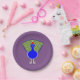 Este incrível prato de festas de papel apresenta um brilhante e ousado Peacock de Natal vestindo um chapéu de Papai Noel. O pássaro tem uma barriga azul brilhante com uma bela coleção de penas guardadas orgulhosamente atrás. Os pontos de vista são azuis, castanhos e verdes. O Pavão tem grandes olhos pretos e um belo bico de cinzas.
