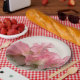 Prato De Papel Ervilhas doces cor-de-rosa fecham