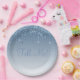 Prato De Papel Escrita de Aniversário do Elegante Azul-Glitter Om
