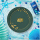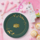 Uma simples coroa de folhas de ouro e crachá brilhante de ouro falso em verde Emerald. Personalize as iniciais e a data do casamento no texto do crachá. Design funciona bem para qualquer Chá, festa de aniversário ou evento de casamento em um tema de Emerald e ouro.