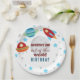 Tema de aniversário espacial infantil. É fácil personalizar. Também disponível como um convite para download digital! Primavera, festas de verão nave espacial, planetas, lua, estrelas, nave espacial alienígena, fonte de script de rico divertido