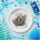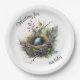 Esperando nossas placas de papel para bebês por Chá de fraldas. Prepare-se para celebrar a chegada do seu novo pequeno com a nossa coleção de suprimentos de chá de fraldas 'Esperando pelo nosso bebê'. Esta imagem encantadora mostra um ninho de pássaro com um ovo de solteiro, simbolizando a antecipação da chegada do seu bebê, contra um belo esquema de cores de amora, azul-fumo, neon e limão escuro, junto com ninho natural e matizes de membros de árvores. Este design pode ser considerado um Boho Style, uma coleção neutra em termos de gênero. Complete a configuração do seu chá de fraldas com copos de papel, placas de papel, guardanapos de papel, uma toalha de algodão de 60" x 104" e uma tapeçaria de poliéster de 50" x 60" com o mesmo design encantador. Para um toque mais elegante, a tapeçaria é personalizável para que você possa adicionar uma mensagem no topo para usar como sinal de boas-vindas. Celebre esta ocasião especial em estilo com o nosso adorável tema do ninho de pássaros!