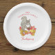 Esta bela design de Dessert de Ação de Graças apresenta uma ilustração aquática de um esquilo amigável sentado entre as lindas folhas de outono segurando uma torta de pecã. Esta festiva, uma espécie de design de arte inclui espaço para personalizar com o ano e seu próprio nome familiar para uma placa de papel de Ação de Graças completamente personalizada. Faça menos pratos este ano e use estas pratos de mesa personalizadas bonitinhas para sua mesa de sobremesa! Os convidados certamente os amam!