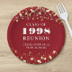 Comemore com colegas de classe na reunião de sua escola ou faculdade com essas placas de papel personalizadas e personalizadas para qualquer classe de graduação (o ano é editável) com seu nome de ano de aula e escola. O design apresenta estrelas douradas e luzes de cordas contra uma cor vermelha de fundo editável e cores de texto que você pode mudar para as cores da sua escola. OPÇÕES DA PLACA: A amostra é mostrada no formato redondo de 7 polegadas; outros tamanhos e formas estão disponíveis na página de pedido. ASSISTÊNCIA: para obter ajuda sobre modificação ou personalização do design, alteração de cor, redimensionamento, transferência do design para outro produto ou você gostaria de coordenar itens, entre em contato com o designer ANTES DE ENCOMENDAR através da guia MENSAGEM de bate-papo Zazzle abaixo ou envie um email para makeitaboutyoustore@gmail.com.