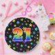 Este design de placa de papel alegre, colorido e alegre apresenta um grande número de "21", tendo uma coloração de padrão inspirada no gradiente do arco-íris. O plano de fundo apresenta um padrão colorido de formas estelares. Chapas de papel divertidas como esta podem ser usadas numa festa que está a ser realizada para celebrar o vigésimo primeiro aniversário de alguém, o vigésimo primeiro aniversário de um casal, ou qualquer outro 21 eventos. [~Z0000493]