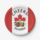 Placas de papel do CANADIANO Patriótico mostrando a bandeira do CANADÁ no fundo, com três cervejas e CHEERS! Sociável! está escrito em texto curvo na parte inferior. Ideal para encontros sociais, partidos privados, celebrações públicas, festivais de cerveja, etc. Itens correspondentes estão disponíveis na Coleção CANADA por Designs Bereanos.