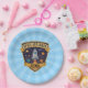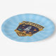 Estas placas de papel personalizadas para crianças apresentam um crachá arrojado e vibrante para exploradores espaciais. No centro do crachá está um foguete de desenho animado lúcido que sobe pelo espaço com planetas orbitando ao seu redor.