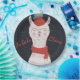 Engraçado, mas na moda de um lhama bonitinho cantando caróis de natal vestindo vermelho, tricotando chapéu com um punho no topo e um cachecol de inverno. Personalize o texto com modelos fáceis - opção. Arte e design por Mira