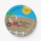 Produtos de Festa de aniversário para crianças com uma arte gráfica brilhante de um agricultor no seu trator que tende à sua fazenda num dia ensolarado. Personalizado com o nome do seu filho no campo recém-arado.