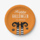 Prato De Papel Feet Laranja de Bruxa Feliz de Halloween Personali