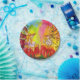 Vibrante, colorido, com cor d'água original - pintura acrílica em cores vermelho vivo, verde, amarelo, azul, rosa, branco com ouro e folha prateada de Búlgaro Lumini (c)