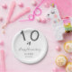 Prato De Papel Feliz 10.º aniversário nome data cinza estrela de