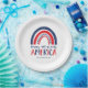 Prato De Papel Feliz 4 de julho América | Red White Blue Rainbow