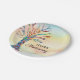 Estas placas de papel Feliz Ação de Graças são decoradas com uma árvore genealógica colorida em fundo aquoso. O texto é personalizável. Mosaico original e Watercolor © Michele Davies.
