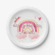 Prato De Papel Feliz aniversário, arco-íris rosa, personalizado