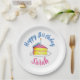 Prato De Papel Feliz Aniversário do Partido da Vela do Bolo Rosa