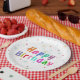 Prato De Papel Feliz Aniversário Estrelas e Texto Coloridos
