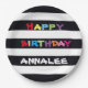 Adicione seu próprio nome a "Simple Bright Colorful Customized Happy Birthday Paper Plates", que têm 9 polegadas de diâmetro Personalize com seu próprio nome. Chapas coloridas de papel "Happy Birthday xoxo" com mensagem fofinha impressa em fundo clássico de Black and White Stripes. Rápido transporte mundial. Garantia de 30 Dias. Orgulhosamente feito nos EUA! Placas de Papel Feliz de Aniversário Simples e Brilhante, criadas pelo artista RjFxx *Muito bem reservado. #ZazzleMade