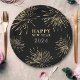 Esta placa de papel Feliz ano novo preto e dourado apresenta uma ilustração moderna, elegante e elegante, completa com fogos de artifício proeminentes.