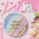 Adicione facilmente o Ano (ou mude ou elimine o texto) neste adorável conjunto de pinks blues e dourados que corresponde a Plates, Portas copos Napkins e muito mais.