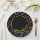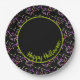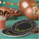 Um design delicioso, nosso Feliz Halloween borrifa pratos personalizáveis pretos e verdes com ilustrações de borrifações coloridas em tons vibrantes de cor laranja, roxa, verde, rosa e preta. Estas placas de papel de festas de Halloween são a adição perfeita a qualquer criança, família ou festa de Halloween adulta. O texto diz "Feliz Dia das Bruxas" e pode ser personalizado para coincidir com a sua celebração especial.