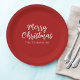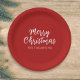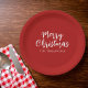 Prato De Papel Feliz Natal Caligrafia Vermelha Simples e Minimali
