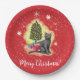 Esta é uma bela design de Natal com cheio vermelho vibrante de fundo de estrelas e minúsculos flocos de neve e com um gato bonito em frente a uma árvore de Natal. Envie suas vibrações amáveis, confortáveis e celebrantes para seus entes queridos!