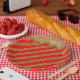 Prato De Papel Feliz Natal - faixa vermelha de brilho