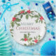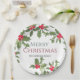 Feliz Natal, etiquetas de férias de fruta. A etiqueta de Natal apresenta um belo design gráfico de mão de morango desenhado com folhas verdes e bagas.