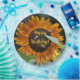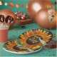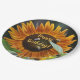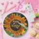 Estas placas de festa de aniversário apresentam um lindo girassol de laranja dourado cheio de abelhas.