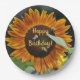 Prato De Papel Feliz Ouro de aniversário Girassol