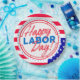 Placa de papel de 9 polegadas com borda de bandeira dos EUA e o texto diz Feliz Dia do Trabalho. Para aquele churrasco do Dia do Trabalho que você está planejando. Cozinhas e guardanapos disponíveis.