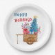 Prato De Papel Feliz Vagão de Férias com Snowman