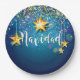 Prata de 9" - Feliz Navidad sobre fundo azul com Douradas Estrelas - - Veja este design, guardanapos, portas copos e muito mais na minha loja.