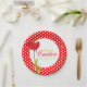 Placas de papel tulipa de páscoa brilhante modernas em vermelho e branco verde. Bonito tulipa de aquarela e borda de bolinhas. As placas podem ser personalizadas com seu próprio nome de família ou evento de Páscoa. Arte de aquarela original e design por Sarah Trett. www.sarahtrett.com para www.mylittleeden.com