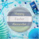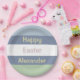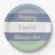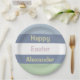 Pasta horizontal azul claro, verde-claro e azul-poeirento, com um padrão riscado e um texto personalizável: Felz pascoa. Clique em editar para alterar o texto e o nome de sua preferência,