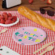 Prato De Papel Felz pascoa rosa do Bolinhas Pastel