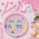 Prato De Papel Felz pascoa rosa do Bolinhas Pastel