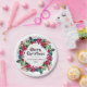 Esta design de Natal chic apresenta o texto "Feliz Natal" com seu nome e ano abaixo em um roteiro elegante rodeado por uma coroa floral de sagrado, meias de Natal, poinsettias e canas doces em vermelho e verde festivos. Edite o texto nas caixas de texto fornecidas. #natal #feriado #sazonal #festivo #floral #estocagem #doce #candycane #holly #watercolor #moderna #na moda #elegante #festa #partysupply #pratos #pranchetas #partyplate #casa #escritório #trabalho