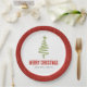 Prato De Papel Feriado Mínimo Verde e Vermelho da Família de Árvo