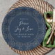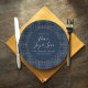 Esta design apresenta o Natal, simples, elegante, tradicional, azul-marinho minimalista de inverno, letra chic de escrita de caligrafia mínima, letra moderna de escrita de letras manuais, nome clássico de família contemporâneo, modelo de tipografia caprichosa, com elegante padrão de vintagem florescente, alegria de paz e amor dizendo, uma festa de Natal janta de papel de sobremesa
