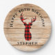 Tema de caçador russo para a 40ª (mudança para qualquer idade) Festa de aniversário. Silhueta de veados na xadrez de búfalos preto e vermelho. Madeira russa em fundo. Personalize com a idade e o nome do aniversariante (ou menina!). Perfeito para aqueles que amam ao ar livre e caçar.