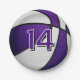 Estas placas de papel de festa de aniversário de basquete divertidas apresentam um gráfico de basquete estilizado com painéis roxos e brancos alternados e recoloridos, sobre o qual você pode personalizar seu texto - por katz_d_zynes
