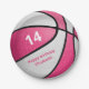 Estas placas de festa de aniversário de basquete divertidas apresentam um gráfico estilizado de basquete com painéis cor-de-rosa e brancos alternados e coloridos, sobre o qual você pode personalizar seu texto - por katz_d_zynes