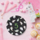 Placas de papel de festa de aniversário de Halloween Spooktaculares com fantasmas e morcegos entupidos contra um fundo negro com a idade do menino ou da menina no meio.